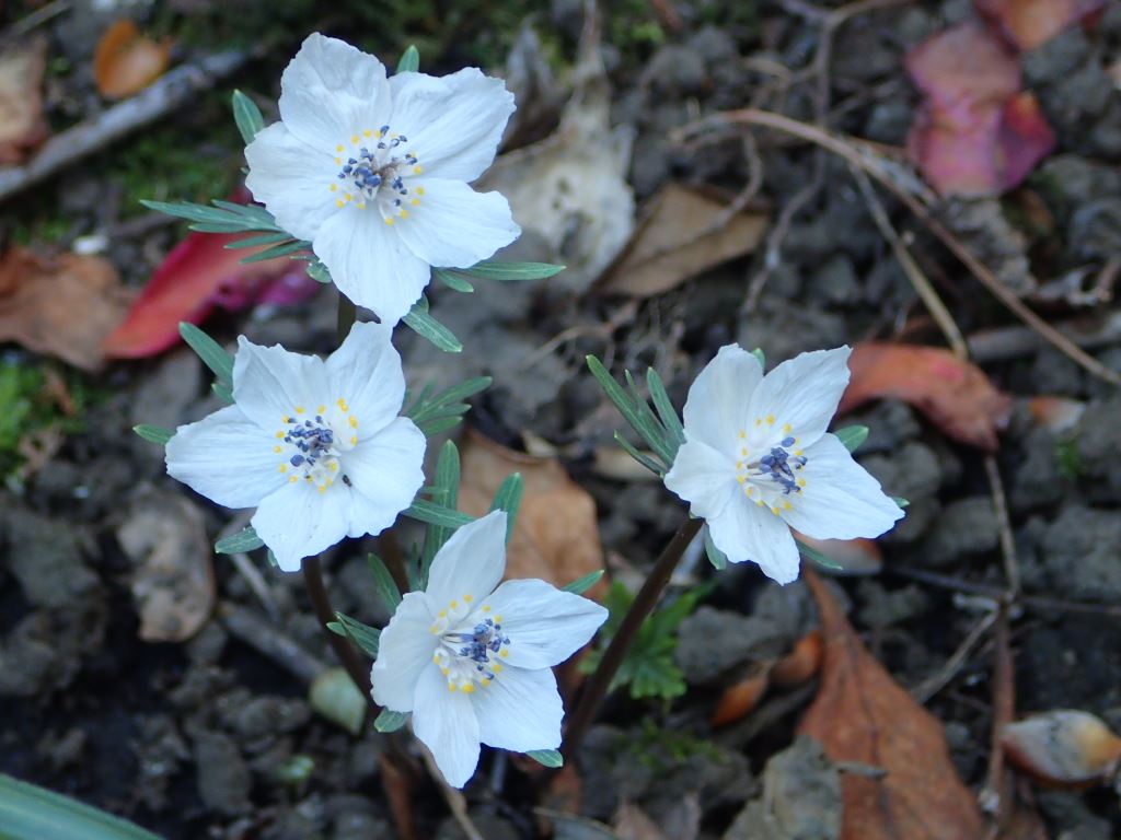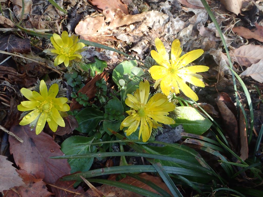 喋ってる。皆、口が2つあるかのようだ。3人いれば6人分。楽しそうで良いねぇー。さっ次は深沢集落。集落は山間にあり雰囲気が良い。目当ては節分草。″深沢屋敷″近くの民有地に群生するがどうか…おぉ一面、雪を散らしたかのようだ。年々増殖し見応えがある。ほんとに″可憐″の言葉がぴったりの花だ。あらぁー可愛い!